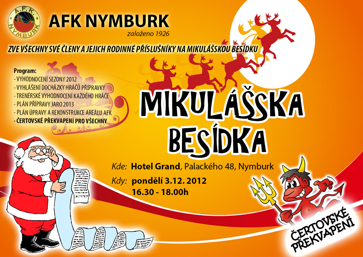 AFK Nymburk zve všechny své členy a jejich rodinné příslušníky na mikulášskou besídku! |