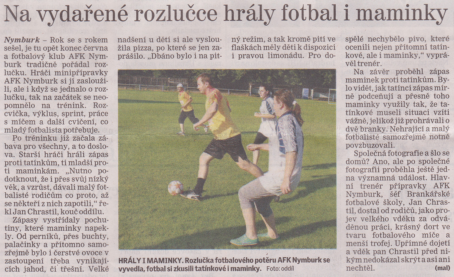 Rok se s rokem sešel a na konci června fotbalový klub AFK Nymburk tradičně pořádal rozlučku. Na začátek si malí hráči ještě naposledy zatrénovali, ale pak již hráli proti maminkám a tatínkům. Nechybělo ani pití a halda jídla. :) Více v odkaze.