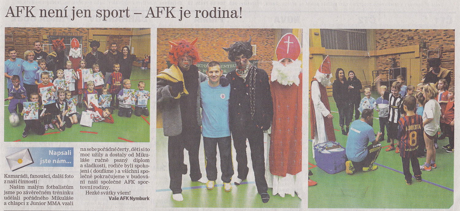 Našim malým fotbalistům jsme po závěrečném tréninku udělali pořádného Mikuláše! I s čerty! Více v odkaze. |