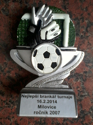 David Kožurik, brankář SK Polaban Nymburk, když halovém turnaji v minikopané SCNB dne 8.2.2014 získal ocenění pro nejlepšího brankáře turnaje! A to v kategorii U12-U13!