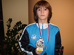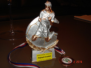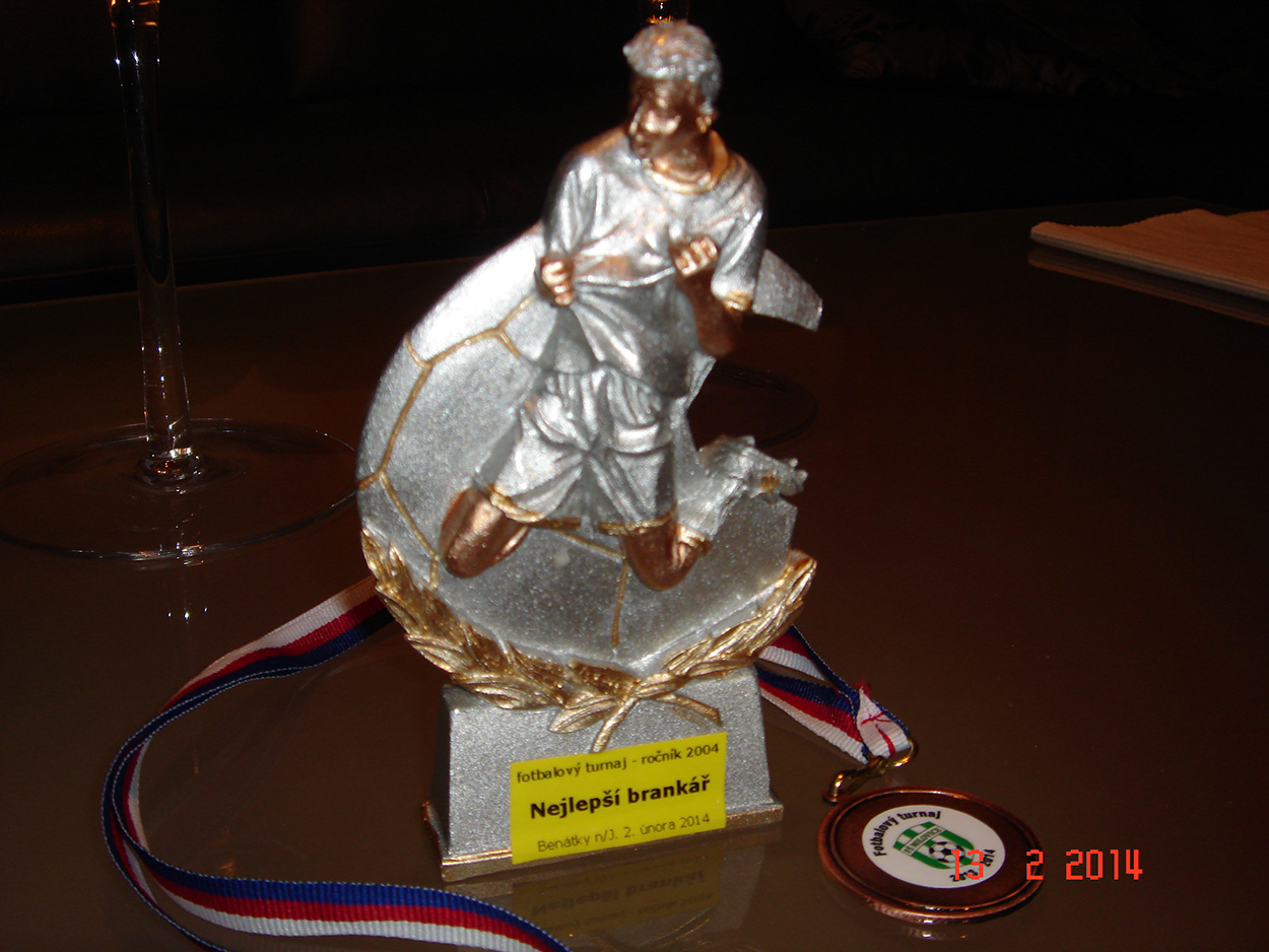 Petra Vilda z TJ Kamenné Zboží! Jeho tým sice v turnaji v Benátkách nad Jizerou starší přípravky dne 2.2.2014. obsadil třetí příčku, ale Petr v roli útočníka, na lehčí soupeře, vstřelil několik branek a na silnejší soupeře šel do brány. A právě jeho skvělé výkony v bráně mu vynesly ocenění NEJLEPŠÍHO BRANKÁŘE turnaje!