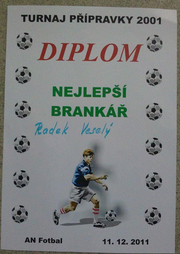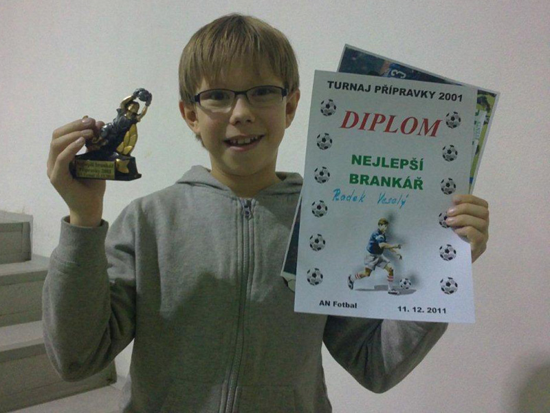Radek Veselý opět získal ocenění pro nejlepšího brankáře turnaje. Tentokrát jej získal na turnaji ve Stochově, kde vychytal dvě čistá konta a díky nim jeho tým SK Slaný neskončil na turnaji poslední. Podle informací tatínka Radek zlikvidoval i nepředvídatelné šance protihráčů!