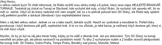 Na fotografii je Radek s více trofejí a soškou. Dovolujeme si uveřejnit i doprovodný email, který nám jeho tatínek napsal. Mockrát mu za něj děkujeme a velice si toho vážíme.