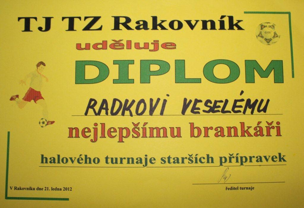 I v novém roce se daří našim svěřencům. Radek Veselý ve svém novém působišti v klubu SK Kladno vybojoval na turnaji pořádaném TJ TZ Rakovník druhé místo a sám získal ocenění pro nejlepšího brankáře turnaje.
