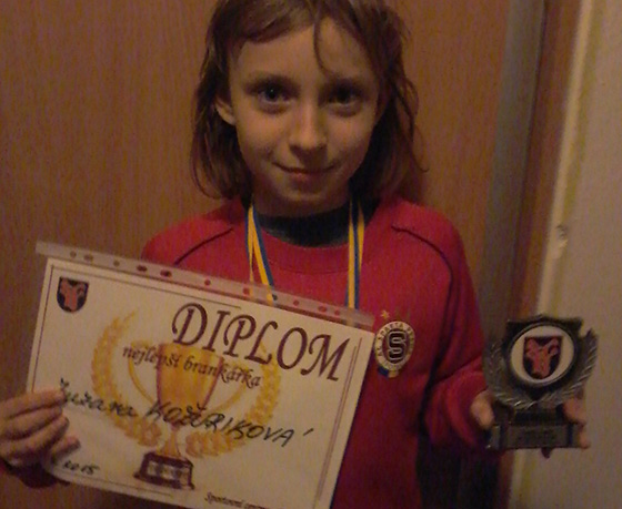 Zuzka Kožuriková! Na turnaji MPŘ v SC Běchovice, kde hrála za pražskou Spartu, si dne 15.3.2015 vybojovala ocenění nejlepší brankářky turnaje!