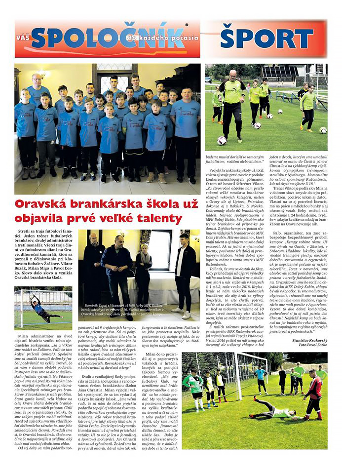 Článek, který sdílela Oravská brankárska škola nás velmi potěšil. Jsme velice rádi, že můžeme být a jsme Oravské školy partneři. :) Děkujeme!