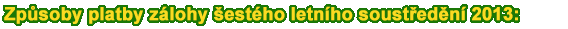 UPOROZNĚNÍ!: Zálohu 4.500,- (6 dní) je nutné uhradit do 30.5.2013! Doplatek 2000,- bude vybírán na místě!